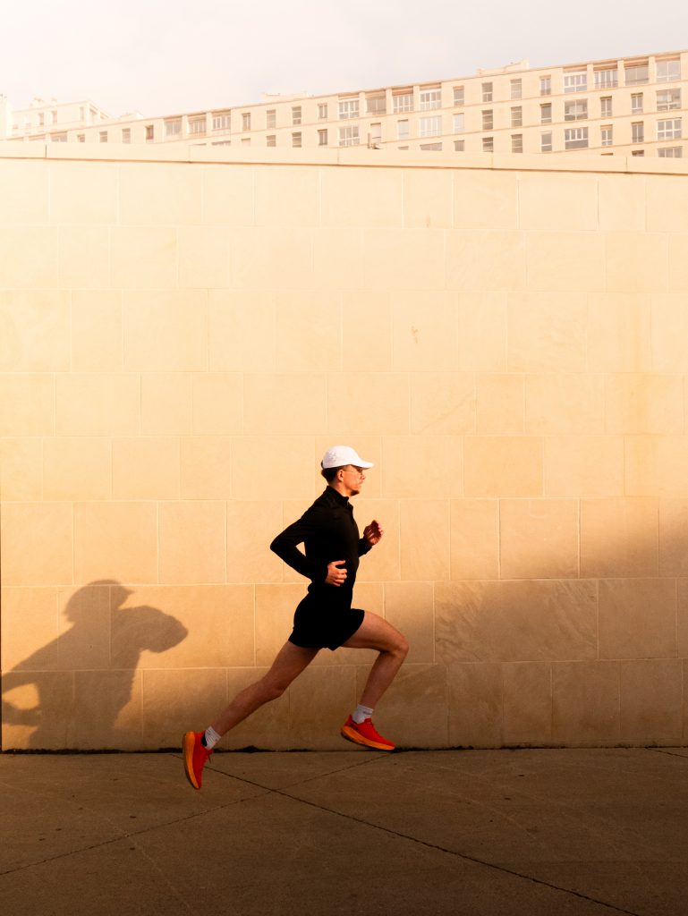 Découvrez cette photo de course à pied en milieu urbain, capturant l’énergie et le dynamisme d’un coureur au coucher du soleil à Marseille.